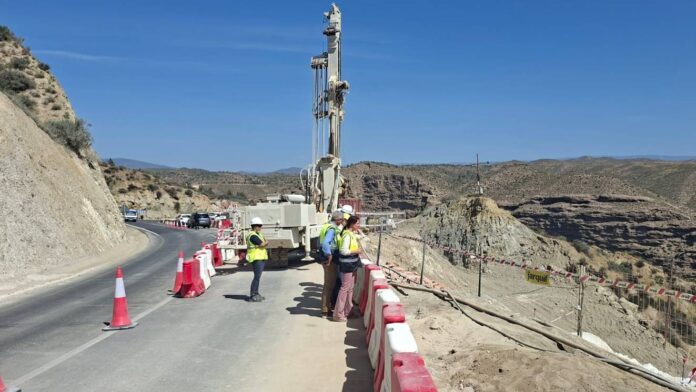 La carretera A-1075, a su paso por Alhama de Almería, continúa inmersa en una importante actuación de emergencia destinada a garantizar la estabilidad y seguridad de la vía tras un deslizamiento de terreno provocado por la aparición de agua en profundidad. La incidencia, localizada en el punto kilométrico 3+300, obligó a poner en marcha una intervención específica para consolidar el talud afectado y evitar nuevos movimientos del terreno.
