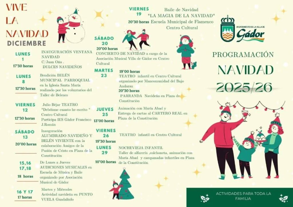 OcioFiestasGádorÚltima hora Toda la programación de Navidad de Gádor Por Andarax Digital - 1 de diciembre de 2025 0 8 FacebookLinkedinTwitterWhatsApp